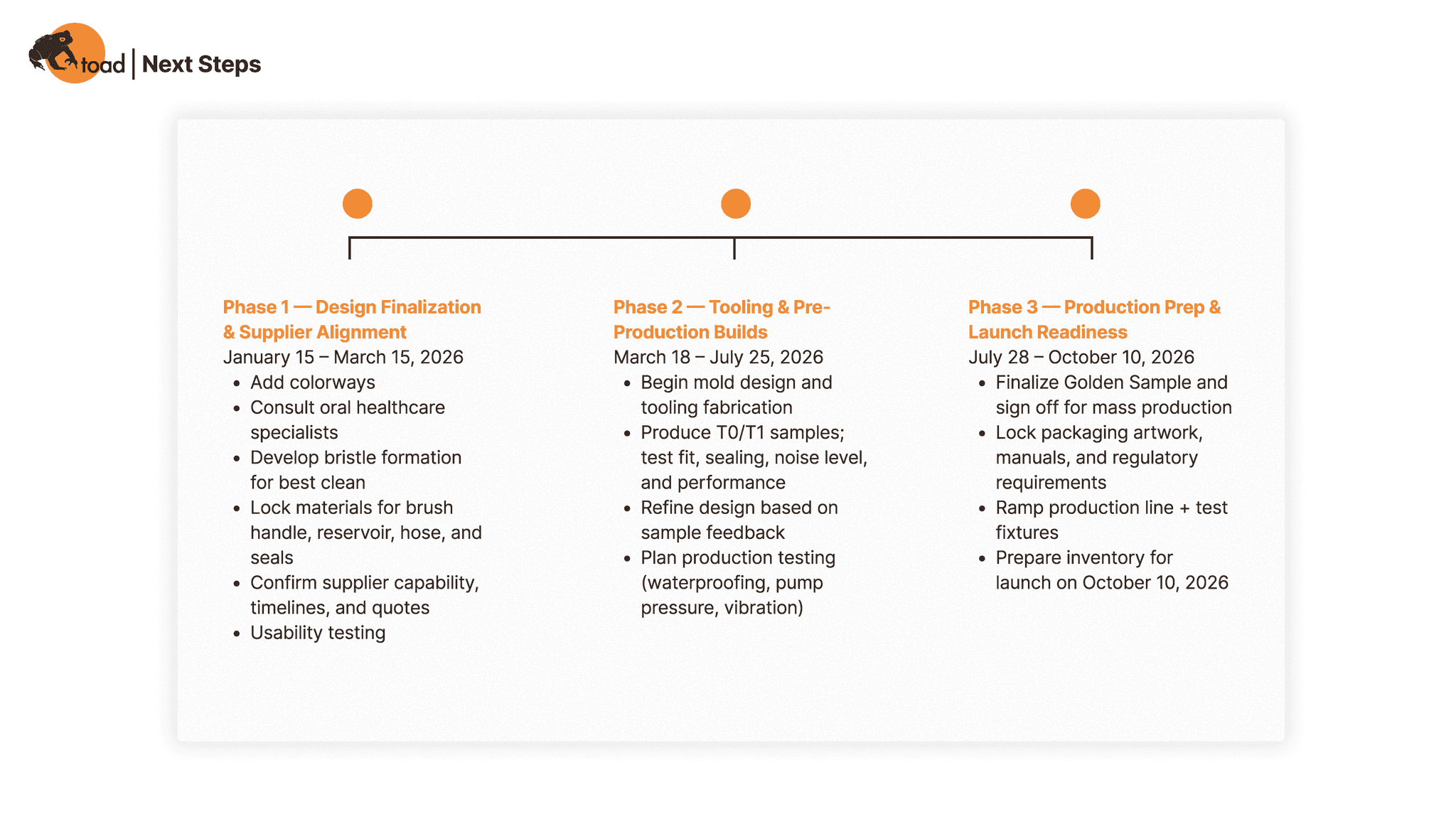 Delivered a spec design document for a home health and wellness product designed for Toad brand, a pre-determined fictional company.